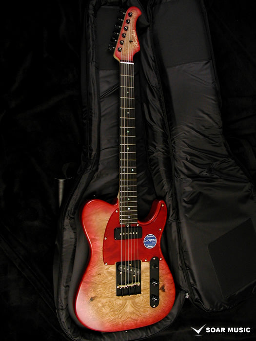 琴體(面板):瘤楓木 琴體:白蠟木 2P 琴頸:楓木 1P 指板:烏木 琴枕:骨製 琴橋:GOTOH BS-TC2 琴頭:GOTOH SG360-07 拾音器:MOJOTONE CLASSIC P90、MOJOTONE HOTROD TL 控制:1Vol、1Tone、3way PU 選擇器刻度:25.5 吋 琴枕寬度:42.0 毫米 指板 R:280R |